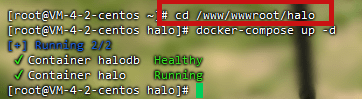 2. 切换到halo目录下,执行 docker-compose up -d启动容器