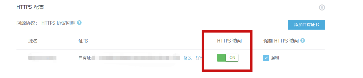 3)开启https的话,这里的证书可以用腾讯云申请的免费一年的证书,这里开启强制HTTPS访问之后,上述ngnix配置SSL证书就不要强制访问了