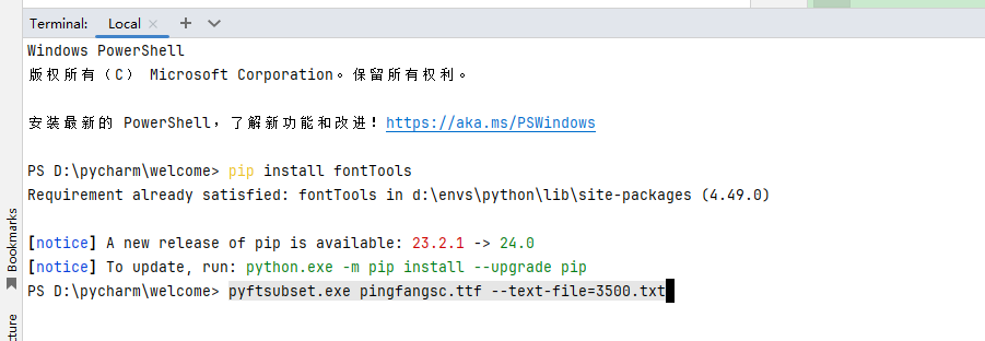 pyftsubset.exe pingfangsc.ttf --text-file=3500.txt