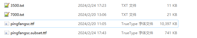 通常使用的常用3500字(基本满足),7000字(包含生僻字),包括字体文件