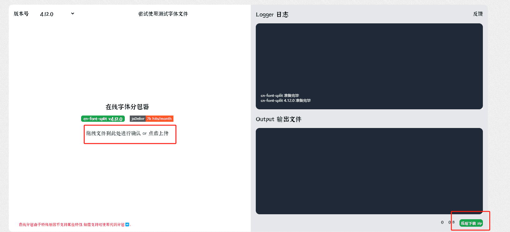接下来需要对字体进行切片,也叫分包,推荐使用在线字体分包网站在线字体分包器,本地分包需要一些额外的环境,操作较为复杂,本文不给予演示
