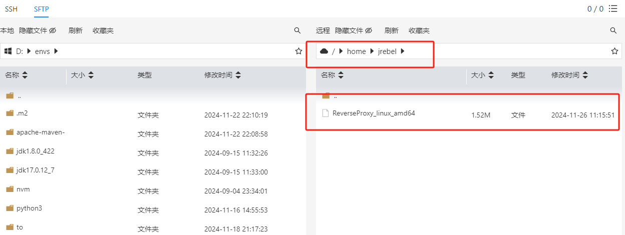 下载ReverseProxy_linux_amd64到服务器,演示地址为/home/jrebel 目录