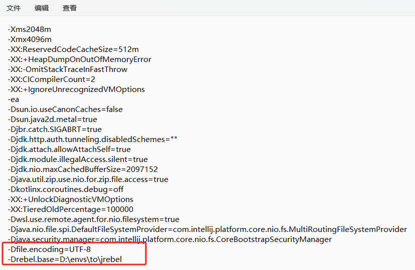 我们优雅点直接一把梭,放到D:\envs\to\jrebel ,需要我们在idea64.exe.vmoptions 中配置
