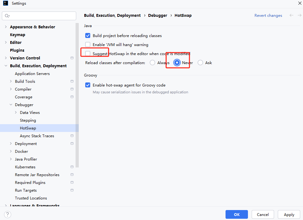 调试模式:HotSwap通常在调试模式下使用,开发者可以在IDE中设置断点并进行代码更改。