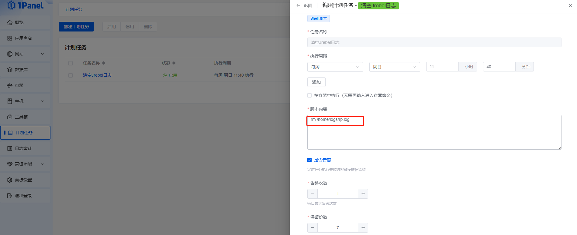 /home/logs/rp.log指定了日志持久化的位置,方便我们用面板的定时任务去清理